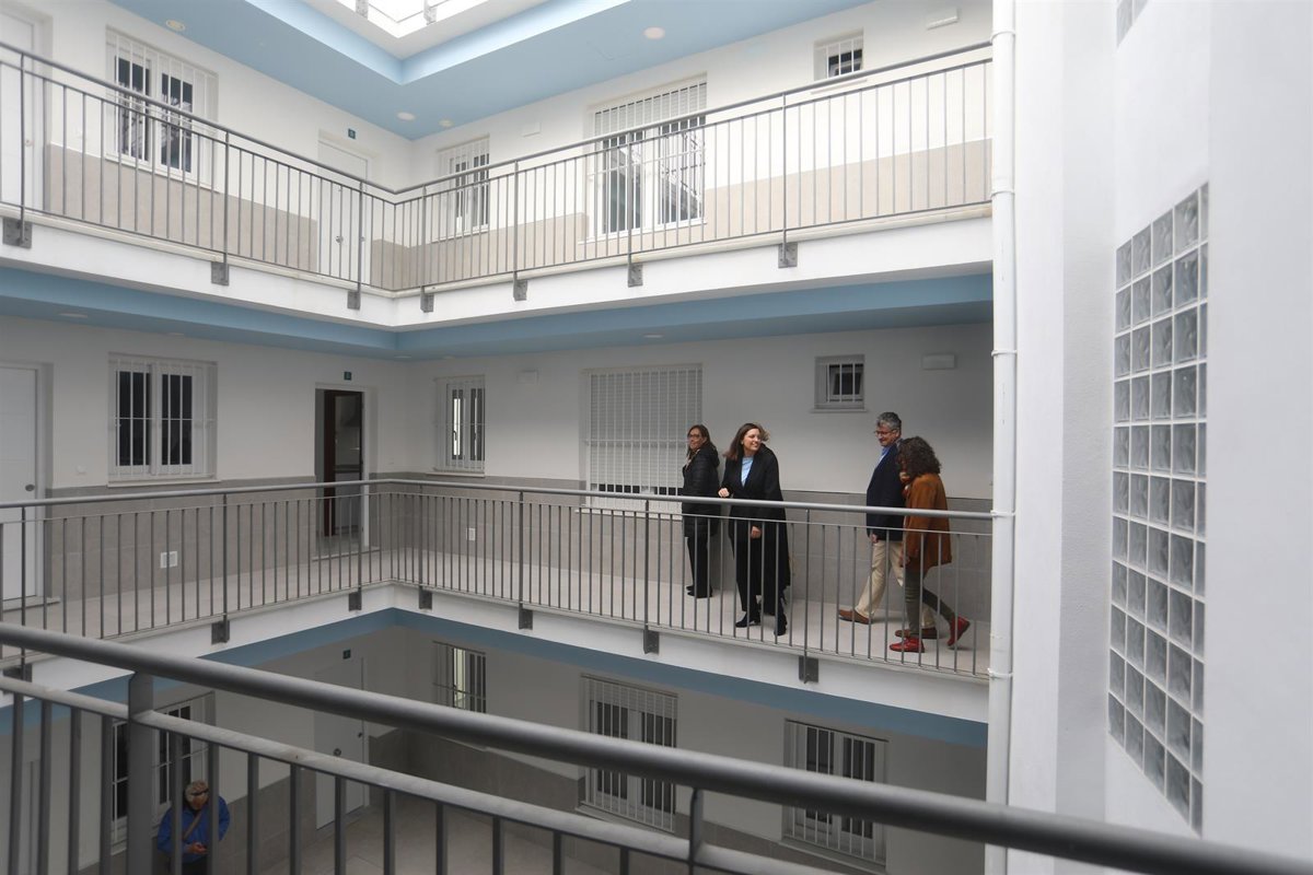 La alcaldesa de San Fernando, Patricia Cavada, ha acudido este lunes al nuevo bloque de viviendas a comprobar el resultado de los trabajos realizados por la constructora Herysan, y que han contado con la supervisión técnica de la empresa pública de suelo, la futura Hemsa. Durante el recorrido, ha recordado que cuatro de las nuevas viviendas serán para los antiguos residentes de las casas de la finca de Alsedo 51, que ahora están realojados. El resto de las construidas se adjudican según el registro de demandantes actualizado, en un proceso que pasará antes por el consejo de administración de la empresa pública.