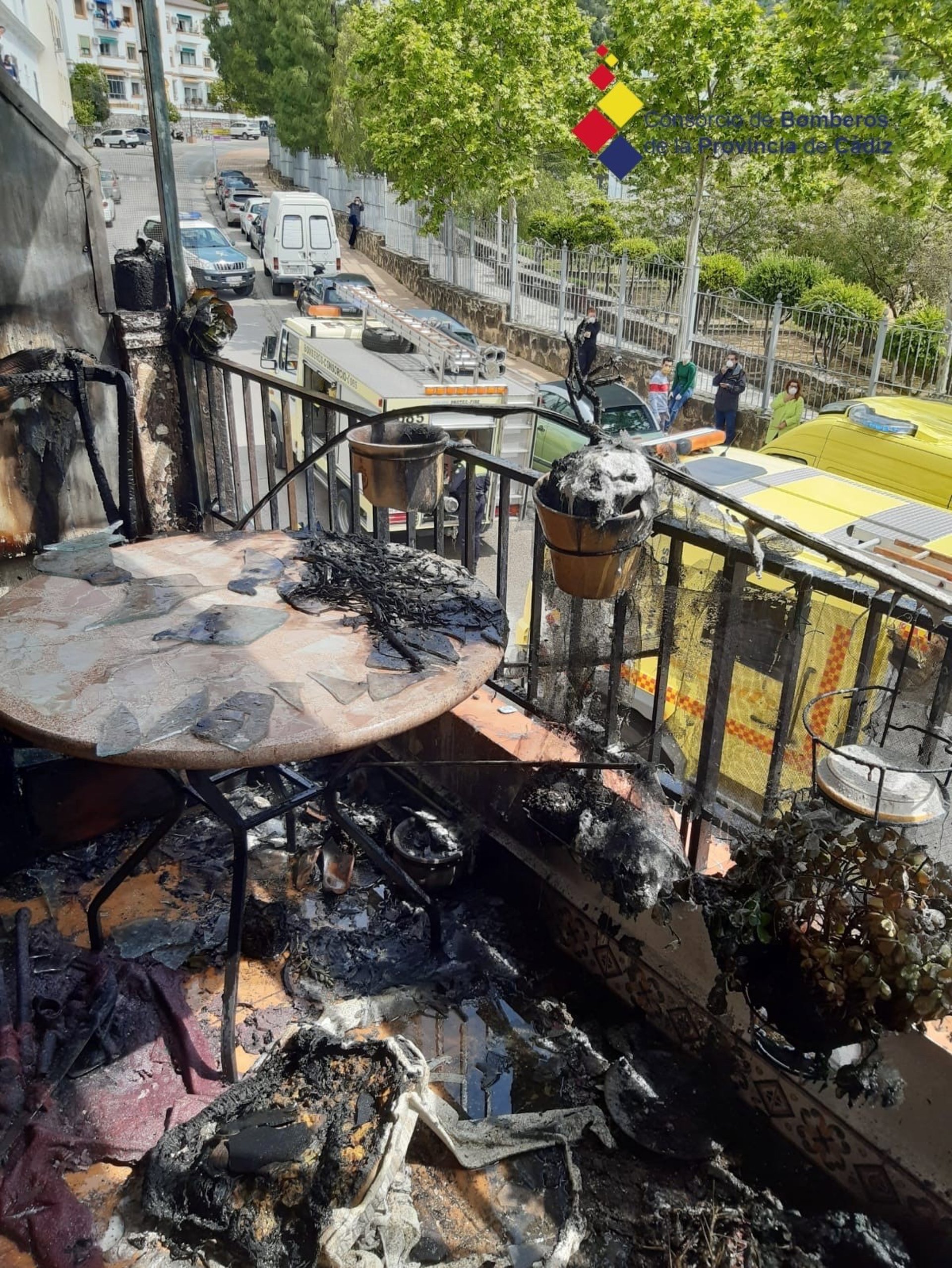 Bomberos del Consorcio de la Provincia de Cádiz han acudido este jueves a la calle Cristobal Colón de la localidad de Ubrique para un incendio en la terraza de una casa que se produjo a partir de un hornillo eléctrico, cuando los ocupantes de la casa, una pareja, se encontraba cocinando en dicha terraza, en la primera planta del edificio.