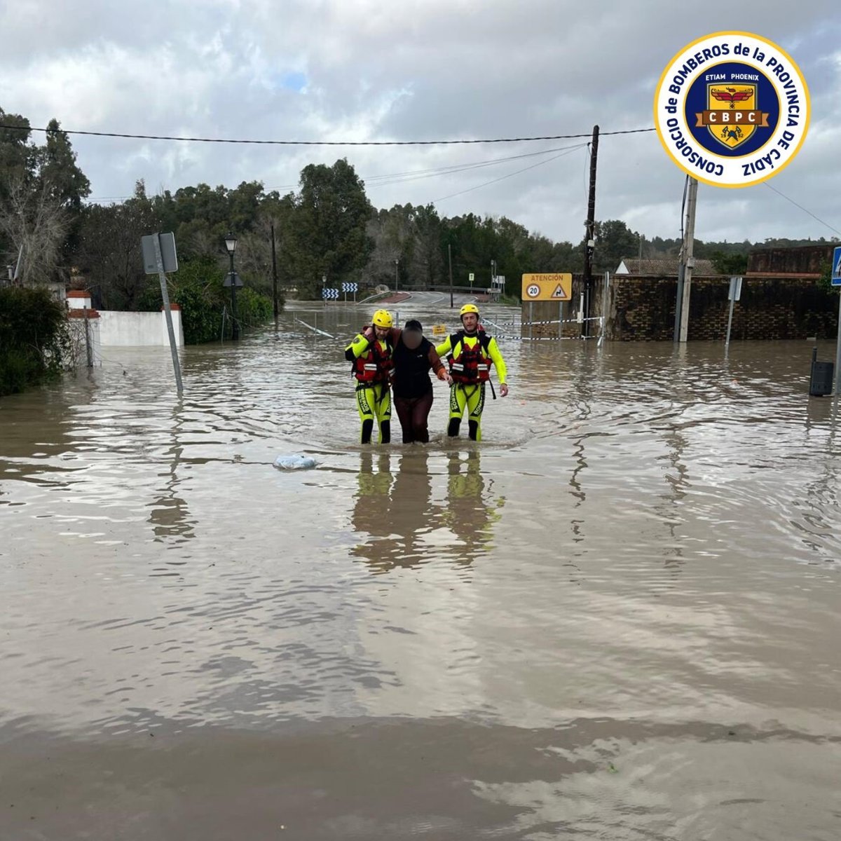 Efectivos del Consorcio Provincial de Bomberos trabajan en la tarde de este jueves en el rescate de seis personas, de dos viviendas situadas en la zona del puente de Angorrilla, en Arcos de la Frontera, que se han visto sorprendidas por la subida del caudal de la presa, según ha indicado el propio Consorcio de Bomberos.