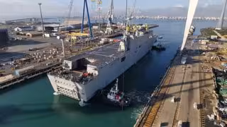 El buque Juan Carlos I entrando en dique en Navantia Puerto Real - ARMADA ESPAÑOLA