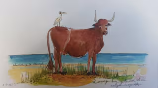 Gaviotas, expurga-bueyes, vacas retintas, pitas, pinos piñoneros, calas y playas de la costa gaditana ilustran esta serie de acuarelas "con alma", que ha nacido para "enamorar" a los turistas que visiten la provincia de Cádiz durante este verano y quieran llevarse en su mochila un "trocito" de su singular paisaje, afirma su autora.