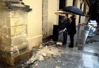 En una nota, ha explicado que "el sillar desprendido se ha deshecho en gran parte al contactar con el suelo, ya que se trata de una piedra arenisca, muy blanda, pudiéndose observar también varios trozos de distintos tamaños en la vía pública".
