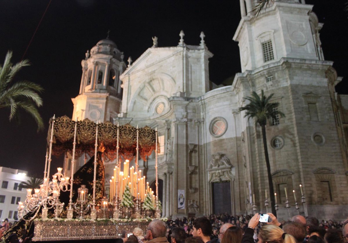 El palio de la Virgen de los Dolores de Servitas por la plaza de la Catedral de Cádiz en una imagen de archivo. - EUROPA PRESS