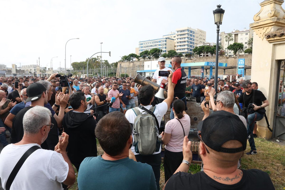Trabajadores del metal durante la huelga la pasada semana ante las puertas de Navantia Cádiz. - Nacho Frade - Europa Press