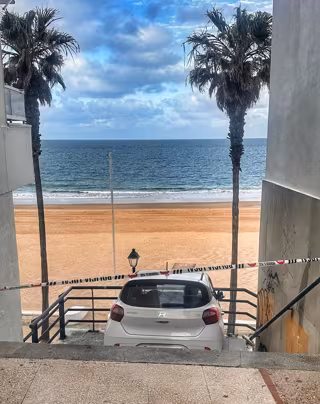 Ante esta situación se ha acordonado la zona hasta la retirada del vehículo de la escalera de acceso peatonal a la playa roteña.