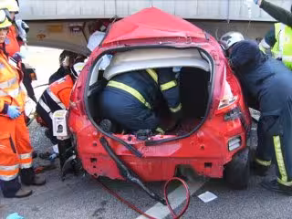 Los efectivos de bomberos tuvieron que proceder a estabilizar a la herida, cortar y desmontar la parte trasera del vehículo por completo y liberar a la joven conductora. Una operación de rescate "complicada" que se ha prolongado durante más de una hora. Posteriormente, tras colaborar en el traslado en camilla de la herida hasta la ambulancia que la conduciría al Hospital, tuvieron que cortar parte del turismo para evacuarlo de los bajos del camión.