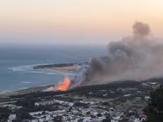 El lugar del fuego se sitúa en primera línea de playa y está separada de una zona de viviendas por una carretera.