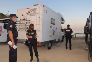 Policías multando por acampada ilegal en Tarifa - JUNTA DE ANDALUCÍA