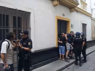El alcalde de Cádiz ha presenciado cómo la Policía retiraba uno por uno a las aproximadamente quince personas que se han unido formando una cadena humana delante de la puerta de la finca con el objetivo de evitar el desahucio.