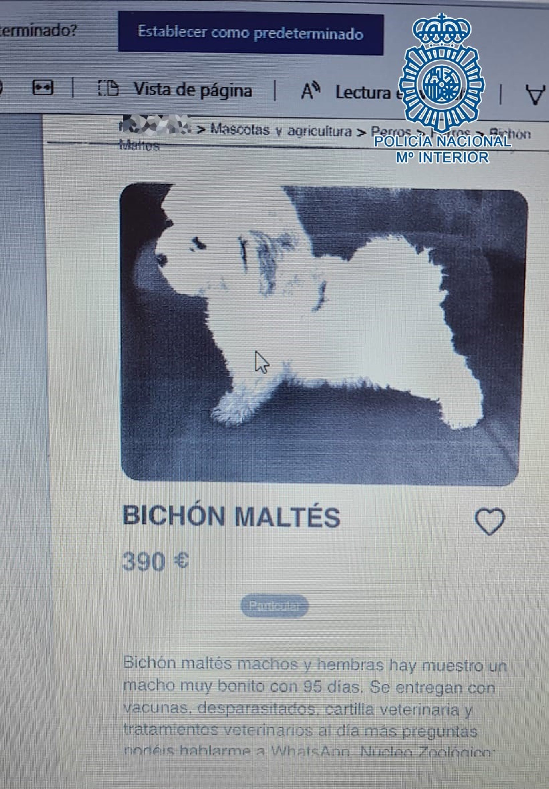 Así, la Policía ha detallado que en sus comunicaciones mediante Internet con personas con sensibilidad por los animales e interesados en adoptar perros en vez de comprarlos, facilitaban fotos falsas de atractivos cachorros que decían disponer en adopción en esos momentos en la protectora.