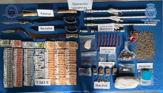 También se han intervenido cuatro armas de fuego tipo bastones detonadores, un arma de fuego consistente en una especie de vara metálica hueca a modo de cañón junto con una empuñadura que alberga una recámara y un sistema percutor, armas con cartuchos de caza de 12 milímetros, 40 cartuchos de esa misma munición, ocho armas blancas de gran tamaño --tres machetes, dos katanas y dos navajas de gran longitud de hoja--, así como 7.583 euros y un vehículo de alta gama.