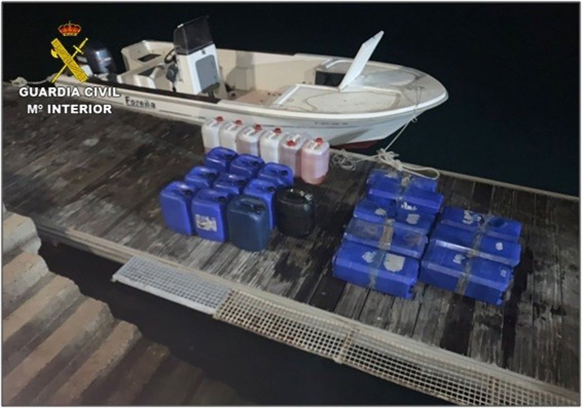 Los guardias civiles dejaron seguir a los tripulantes y se dirigieron a por la otra embarcación, de tipo foreña, que también tenía dos tripulantes y seguía en el mismo punto. Una vez llegaron a ella, comprobaron que en su interior se encontraban garrafas de combustible.