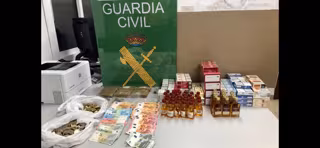Asimismo, los agentes encontraron en el kiosko 162 cajetillas de tabaco de contrabando, 43 botellas de alcohol sin las precintas reglamentarias y 1500 euros de dinero en efectivo.