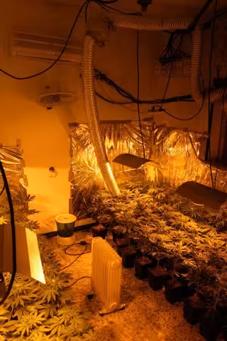 En los registros practicados los agentes incautaron una escopeta de cañones recortados, municionada y en disposición de hacer fuego, un puñal de doble hoja, grilletes metálicos, cartuchos de postas, 194 plantas de marihuana halladas en dos dormitorios habilitados para el cultivo y elaboración, una prensa hidráulica para la elaboración, corte y empaquetado de cocaína, y diversos productos químicos para el corte de la cocaína y la elaboración de la marihuana.