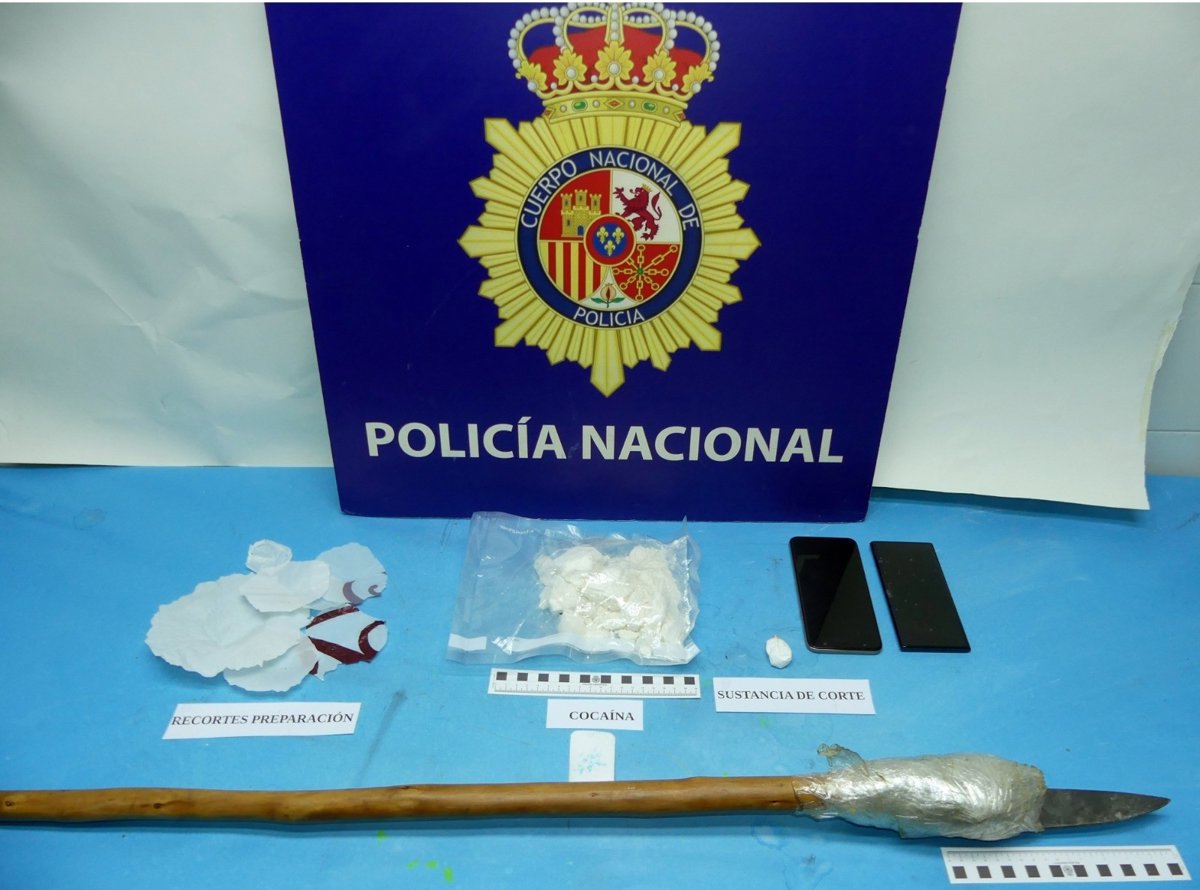 Tras conseguir la orden de registro, buscaron el momento idóneo para realizar la entrada en la vivienda de la forma más rápida y eficaz. Así, los agentes actuantes aprovecharon un descuido de las personas que se encontraban en la vivienda para realizar el registro y proceder a su detención. Se incautaron 210 gramos de cocaína pura, tres gramos de sustancia de corte y un palo con un cuchillo a modo de lanza.
