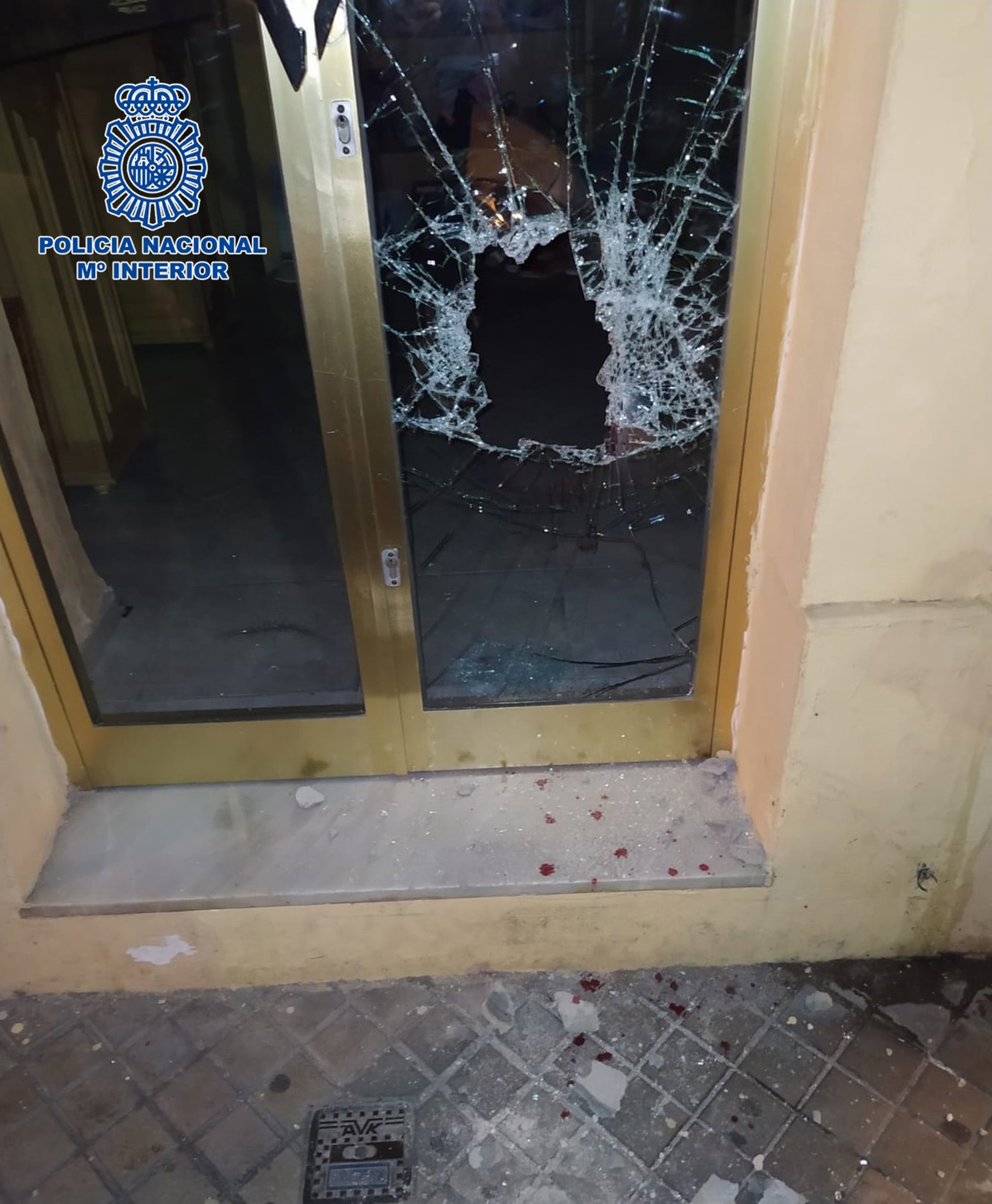 Los agentes comprobaron como el cristal de seguridad de la puerta de acceso principal al lugar presentaba un boquete de importante diámetro, pero aún no lo suficiente para que por el mismo pudiera introducirse una persona, por lo que de inmediato iniciaron una búsqueda por las inmediaciones del autor de los hechos.