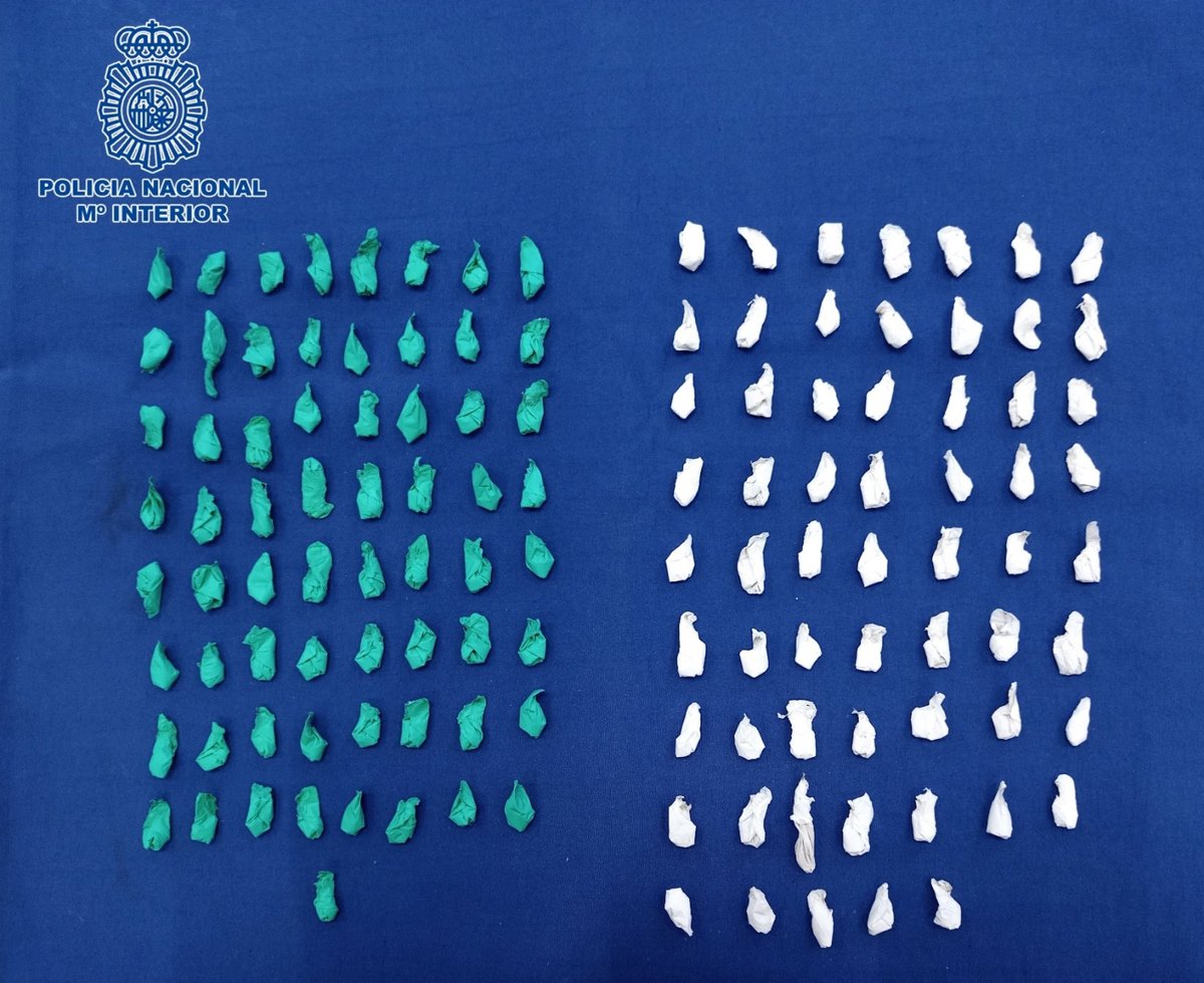 El individuo, al percatarse de la presencia policial, intentó huir a la carrera, siendo alcanzado rápidamente por los agentes. En el cacheo realizado, los agentes hallaron en poder del sospechoso 61 papelinas de heroína y 65 de "rebujito", mezcla de cocaína y de heroína, todas ellas preparadas para su venta directa a los consumidores.