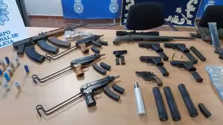 En la convocatoria de prensa, uno de los agentes allí presentes, especialista en Armamento y Tiro de la Policía Nacional ha explicado las características de la importante cantidad de armas que han podido incautar durante la operación 'Mosquito'.