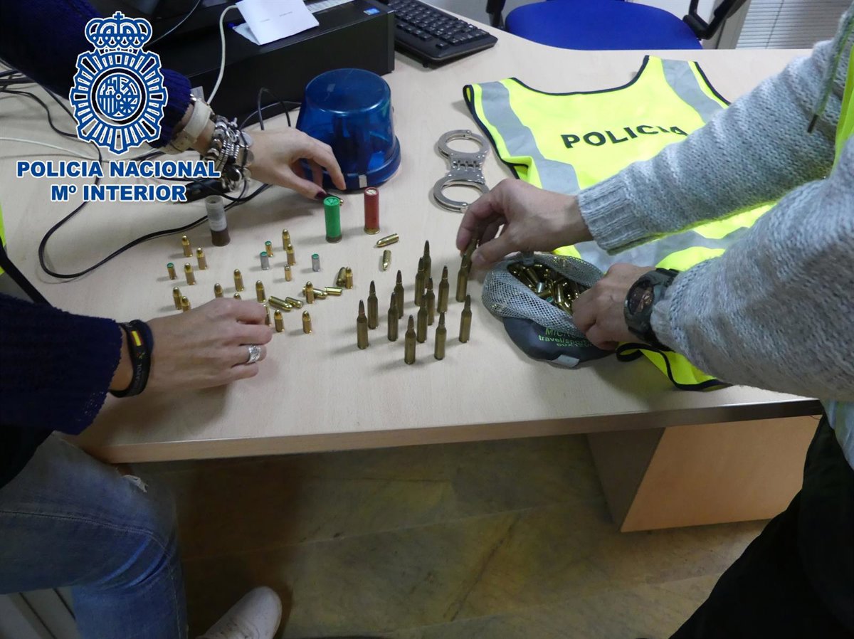 En el registro efectuado en la vivienda se localizaron, un fusil, 143 cartuchos, la mayoría de ellos de nueve milímetros, un chaleco reflectante con la leyenda policía en la espalda, un luminoso de emergencia policial y unos grilletes.