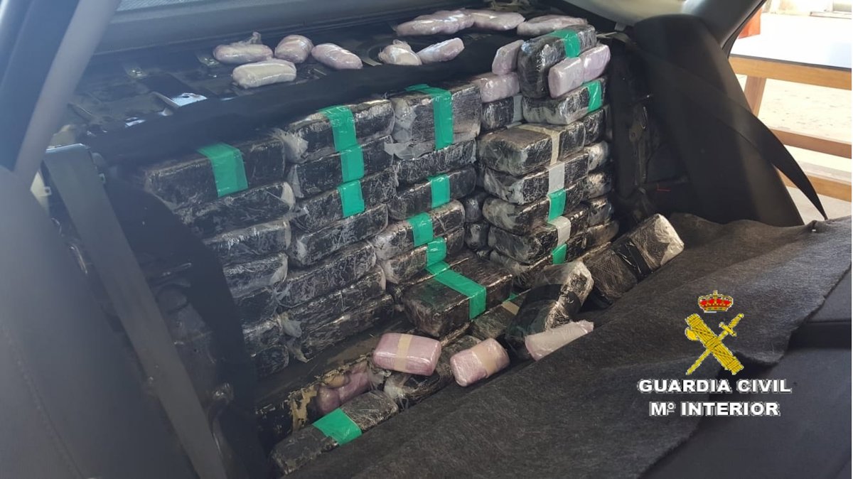 Por ello, según ha informado en un comunicado la Guardia Civil, realizaron una "laboriosa inspección del vehículo, apoyados por un componente del Servicio Cinológico", y constataron la existencia de varios espacios habilitados para transportar hachís bajo las estructuras metálicas del suelo y maletero, así como de la consola de mandos.