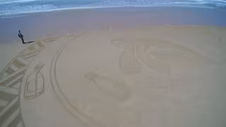 La playa de Sancti Petri (Cádiz) ha sido el escenario elegido por el artista holandés Marcel van Es para realizar una gigantesca pintura de una tortuga rodeada de plásticos de más de 25 metros de diámetro en la arena, y para denunciar así la contaminación por plásticos que sufren los océanos.
