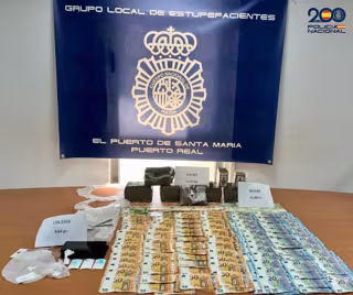 Agentes de la Policía Nacional han detenido a un hombre y una mujer, de 39 y 33 años respectivamente, como presuntos autores de un delito contra la salud pública al desmantelar un punto de venta de droga ubicado junto a un colegio del municipio gaditano de Puerto Real. En el operativo se han incautado más de seis kilos de hachís, diez gramos de cocaína y 15.465 euros en metálico.
