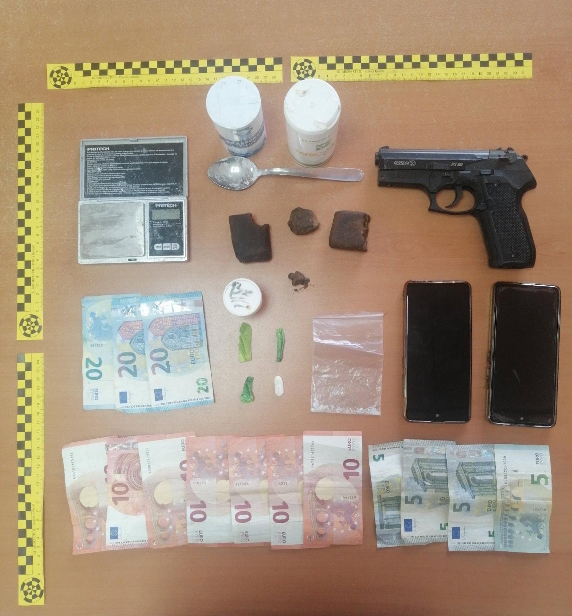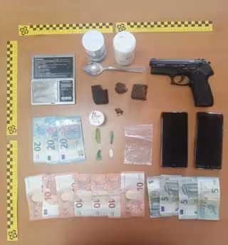 Además, fueron intervenidas diez dosis de cocaína, 100 gramos de hachís, más de 300 euros en dinero fraccionado para efectuar las transacciones, una pistola simulada, siete teléfonos móviles, así como diversos instrumentos para la realización de las dosis, pesaje y producción de las sustancias estupefacientes.
