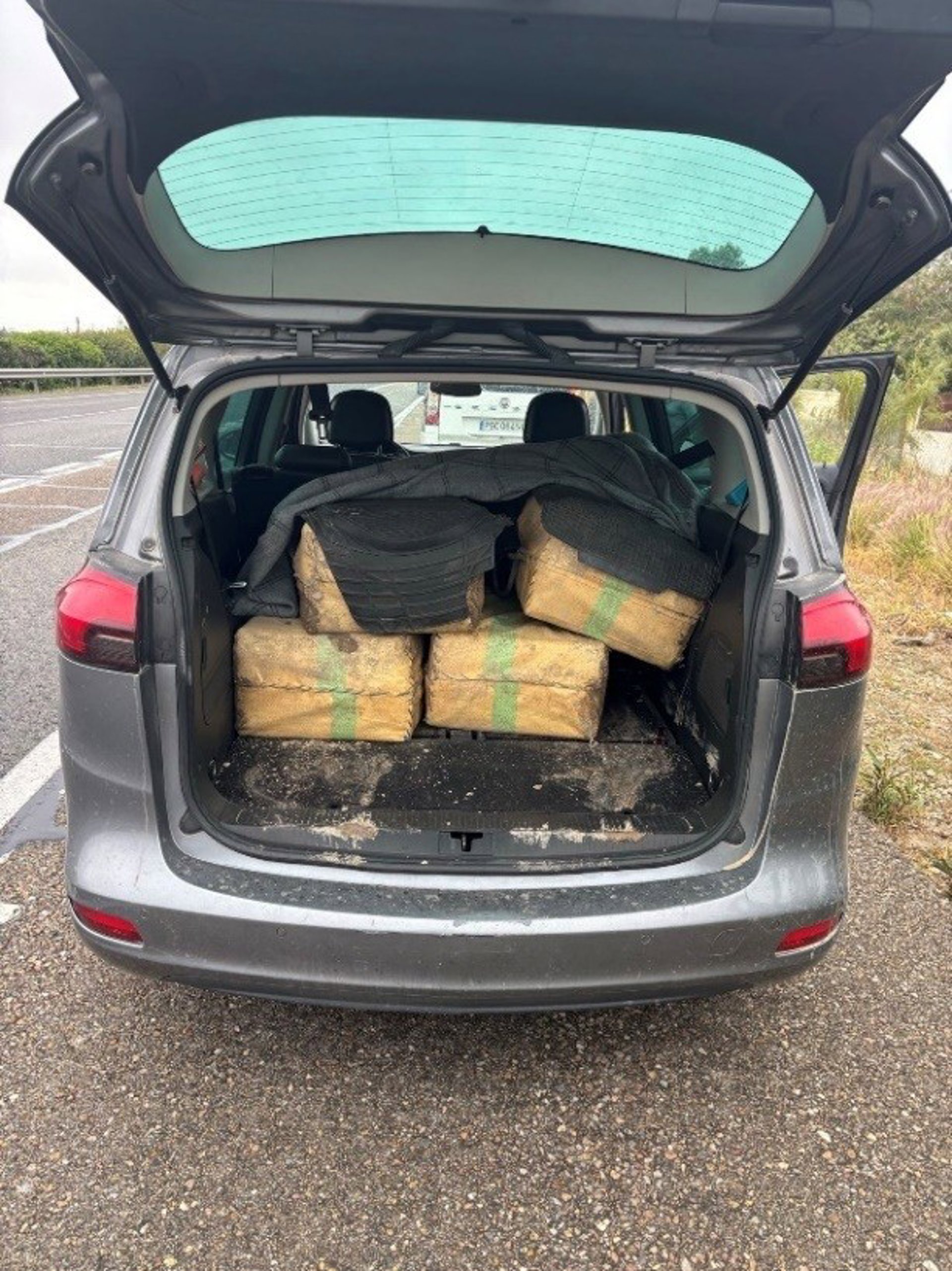 Una vez interceptado los agentes se percataron en el interior del vehículo transportaban cuatro fardos de hachís, con un peso de 170,800 kg. Además, el conductor fue sometido a las correspondientes pruebas de detección de drogas y de alcohol, arrojando un resultado positivo en drogas, por lo que también fue denunciado por infracción al artículo 14-1 de la Ley de Seguridad Vial, pendiente de confirmación por parte del laboratorio.