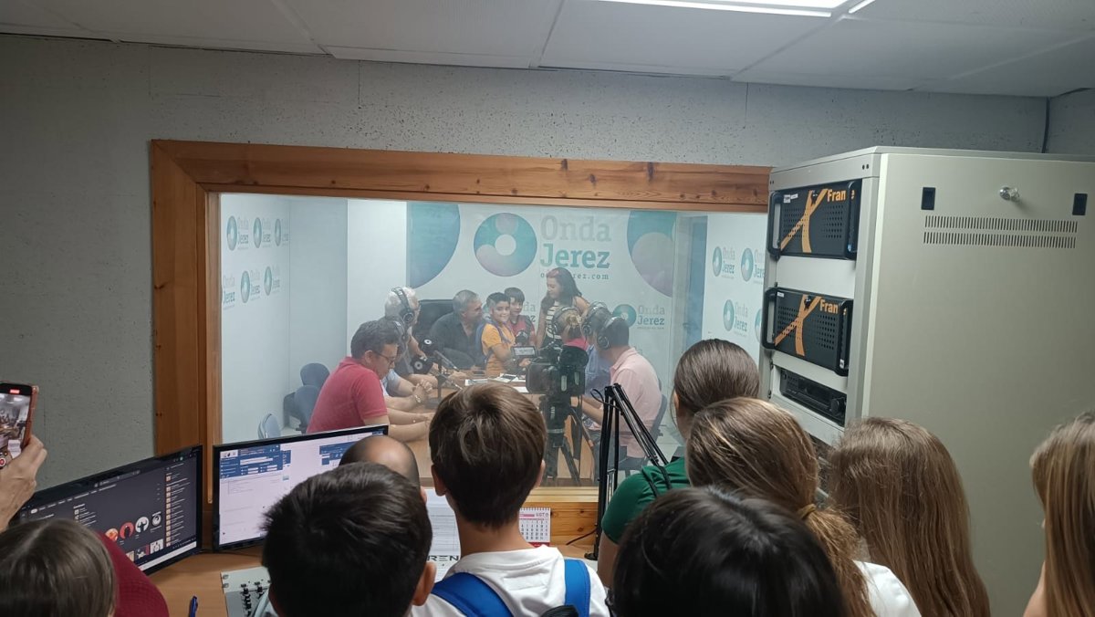 Alumnado de quinto de Primaria del CEIP Arana Beato en Jerez en una visita a las instalaciones al medio de comunicación público Onda Jerez - COLEGIO DE PERIODISTAS DE ANDALUCÍA