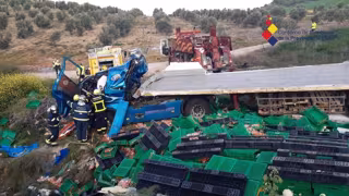 Según informa el Consorcio de Bomberos de la Provincia de Cádiz en un comunicado, el vuelco del trailer, cargado de alimentos en su mayor parte verdura, tuvo lugar en el kilómetro 76 de la A-384 cuando el vehículo se salió de una de las muchas curvas pronunciadas existentes en ese tramo de carretera, quedando atrapado bajo la cabeza tractora del camión.
