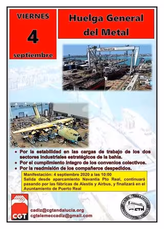 Por último, desde CGT y CTM han hecho un llamamiento "a toda la ciudadanía a participar en la manifestación" y han recordado que los motivos de la huelga son: garantizar el futuro mediante compromisos de cargas de trabajo en el sector del metal en el ámbito de la convocatoria y dar fin a la desigualdad en el ámbito laboral, económico y social de las personas trabajadoras en las empresas auxiliares.