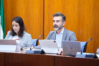 El consejero de Sostenibilidad, Medio Ambiente y Economía Azul, Ramón Fernández-Pacheco, en comisión parlamentaria. - JOAQUÍN CORCHERO/PARLAMENTO DE ANDALUCÍA