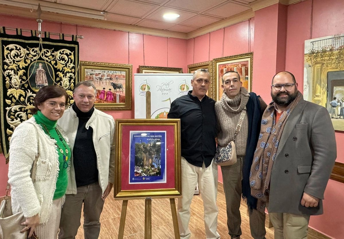 El teniente de alcalde de Fiestas del Ayuntamiento de El Puerto de Santa María, David Calleja, ha descubierto el cartel anunciador de la XXXIII Fiesta de San Antón, una fotografía de Miguel Naveiro que muestra la imagen del Santo en plena romería.