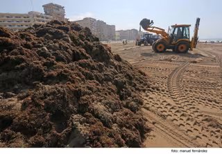 Debido a la acumulación de algas en la Playa Victoria derivada de las fuertes mareas, la Delegación Municipal de Playas, dependiente del Área de Medio Ambiente del Ayuntamiento de Cádiz, está llevando a cabo trabajos de retirada de las mismas.