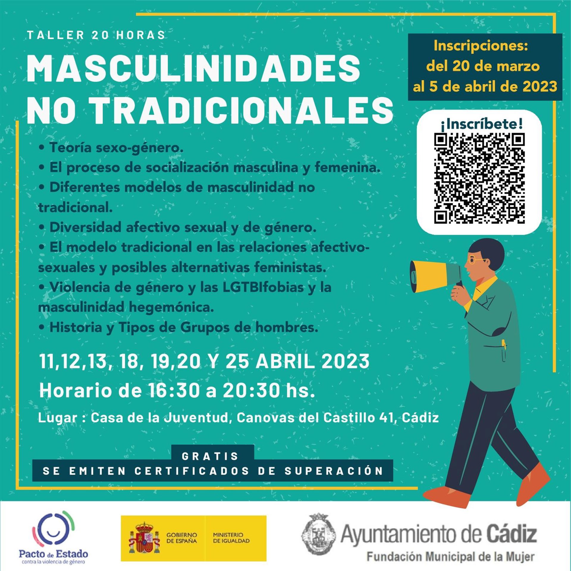 La Fundación Municipal de la Mujer de Cádiz abrirá este lunes, 20 de marzo, y hasta el 5 de abril el plazo de inscripción para una nueva edición del curso masculinidades no tradicionales frente a la violencia de género y a la Lgtbifobia.