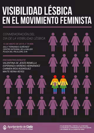 A partir de las 19,00 horas de este miércoles, se celebrará en la sala Fernando Quiñones del Centro Integral de la Mujer un encuentro debate en el que intervendrán las investigadoras, activistas lesbianas y representantes del movimiento feminista gaditano Valentina de Jesús Remella (antropóloga, una de las fundadoras de la Asociación Gaditana de la Mujer 'La Pepa' en 1975), Esperanza Moreno Hernández (presidente de Arco Iris de Cádiz), Carmen Ríos Rodríguez (Asamblea Feminista de Cádiz) y Maite Reina (investigadora feminista).