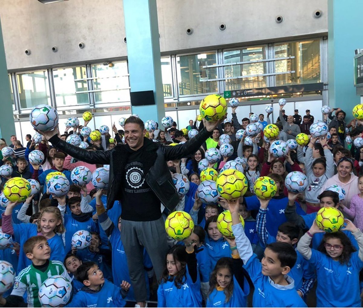 El futbolista del Real Betis Balompié Joaquín Sánchez ha hecho entrega de 200 balones de fútbol a menores en riesgo de exclusión social en Cádiz, a través de una iniciativa de Obra Social 'la Caixa', organizada con la colaboración de la Fundación Cruyff y el Ayuntamiento de Cádiz.