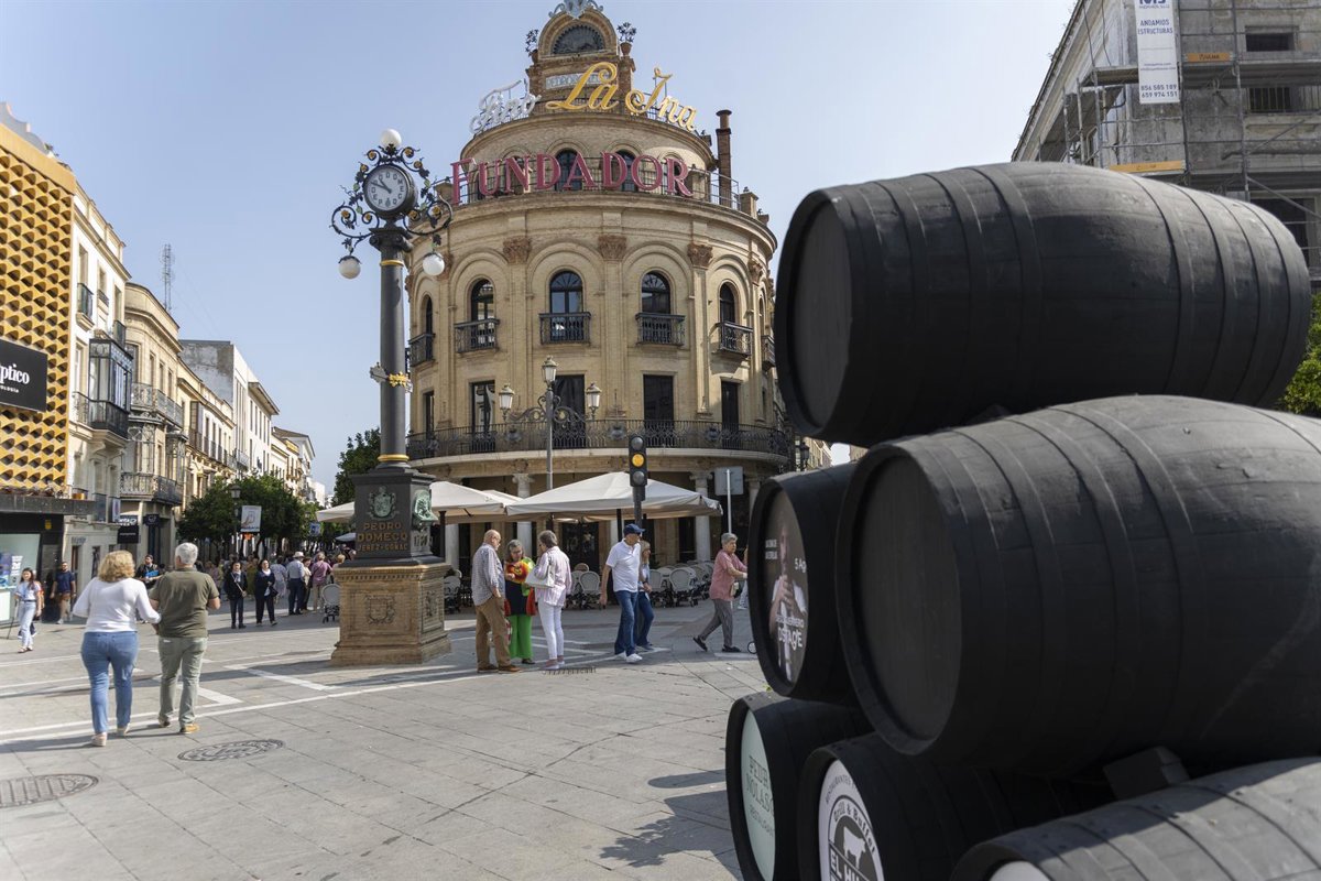 Archivo - Vista del Gallo Azul y toneles de vino en el centro de Jerez de la Frontera - ROCÍO RUZ/EUROPA PRESS - Archivo