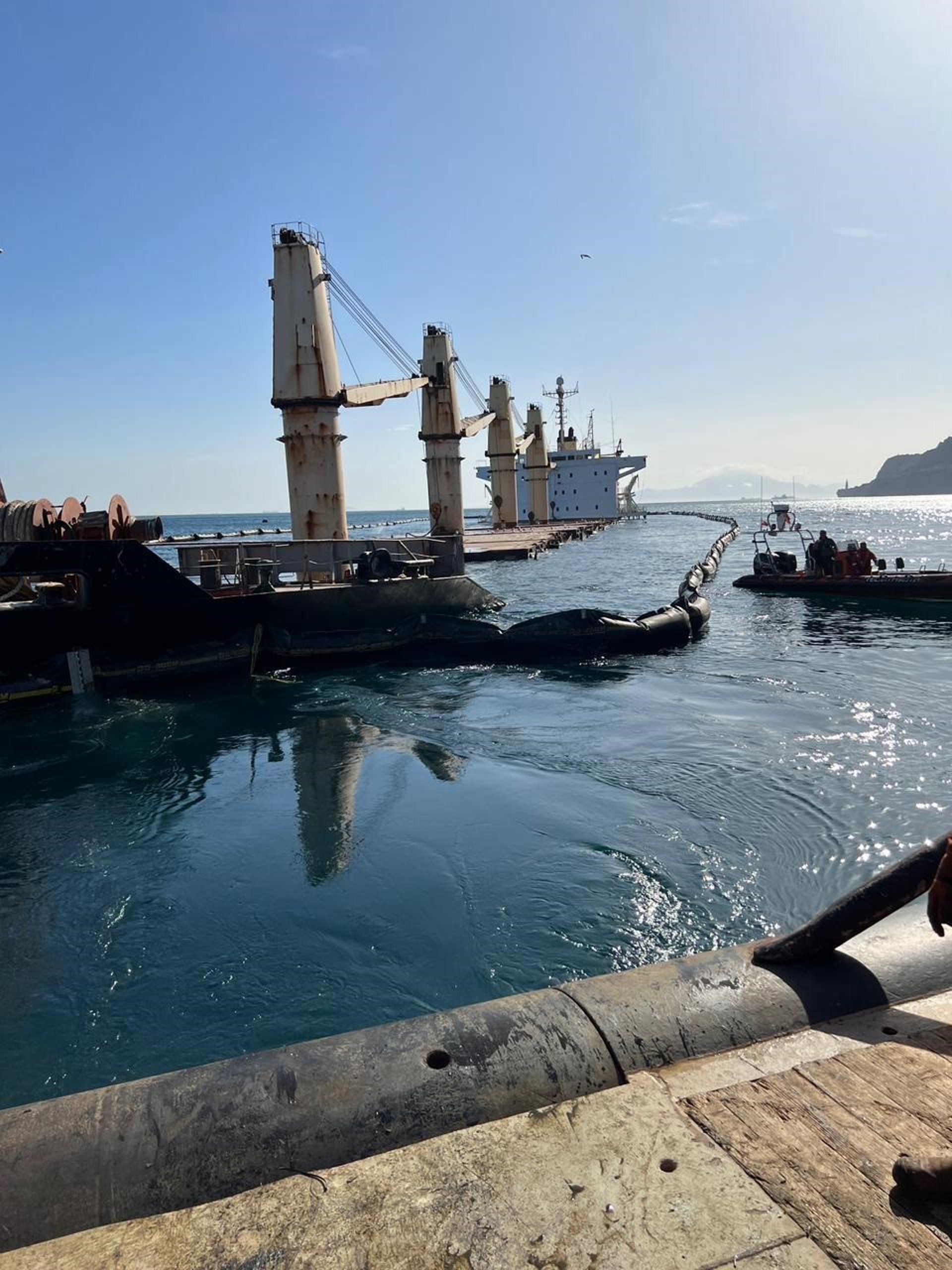 La Capitanía ha señalado que la barrera se recolocará y las barcazas retomarán las operaciones de retirada de restos "tan pronto como sea seguro hacerlo".