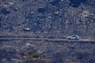Un todo terreno del Infoca supervisa la zona quemada del fuego de Tarifa. A12 de agosto de 2025. en Tarifa, Cádiz (Andalucía, España).- Francisco J. Olmo - Europa Press