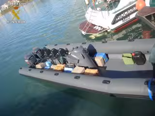 Posteriormente, la embarcación, una neumática de diez metros de eslora con dos motores de 250 CV, se adentra por el río Guadarranque, siendo interceptada finalmente en un margen del río próximo al Cine Cité.