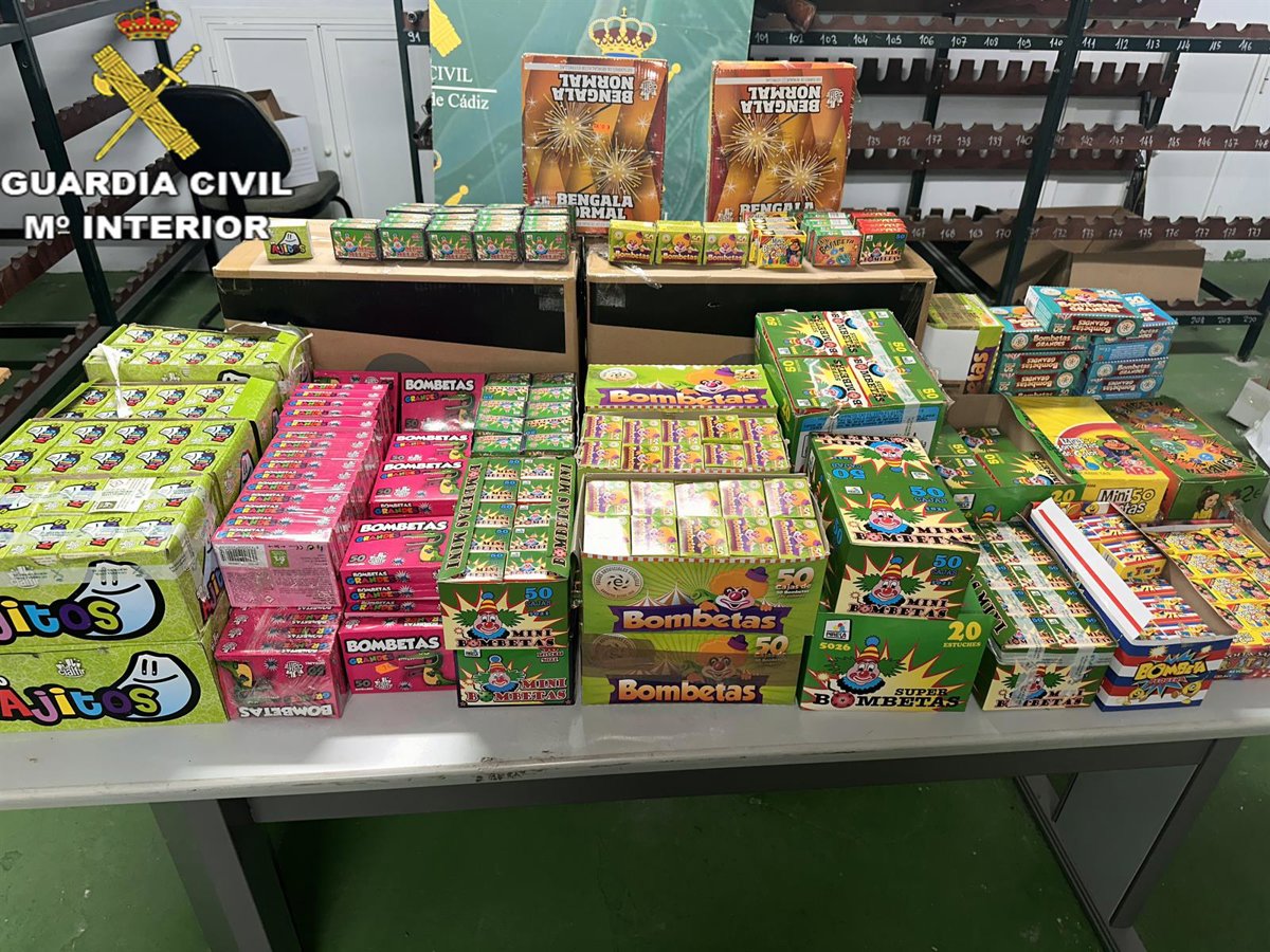 La Guardia Civil de la Comandancia de Cádiz ha retirado del mercado un total de 888 cajas de 44.400 unidades de artificios pirotécnicos y ha interpuesto 24 denuncias por infracción administrativa a establecimientos por su venta ilícita o por irregularidades en su venta.