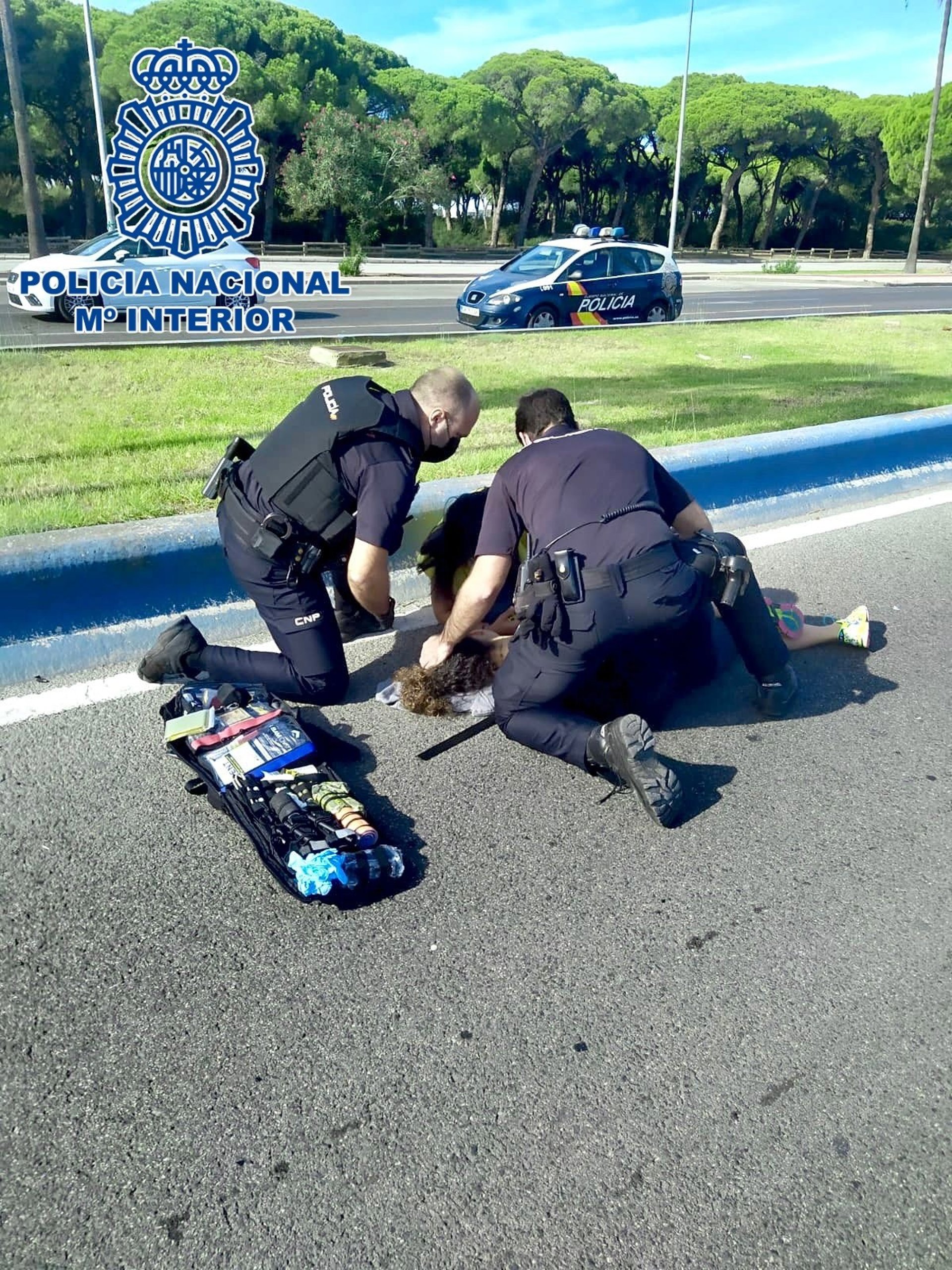 Agentes de la Policía Nacional atienden a una mujer en El Puerto de Santa María tras ser atropellada. - POLICÍA NACIONAL