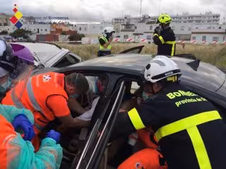 Bomberos y sanitarios auxilian al conductor accidentado en San Fernando - CONSORCIO DE BOMBEROS DE CÁDIZ