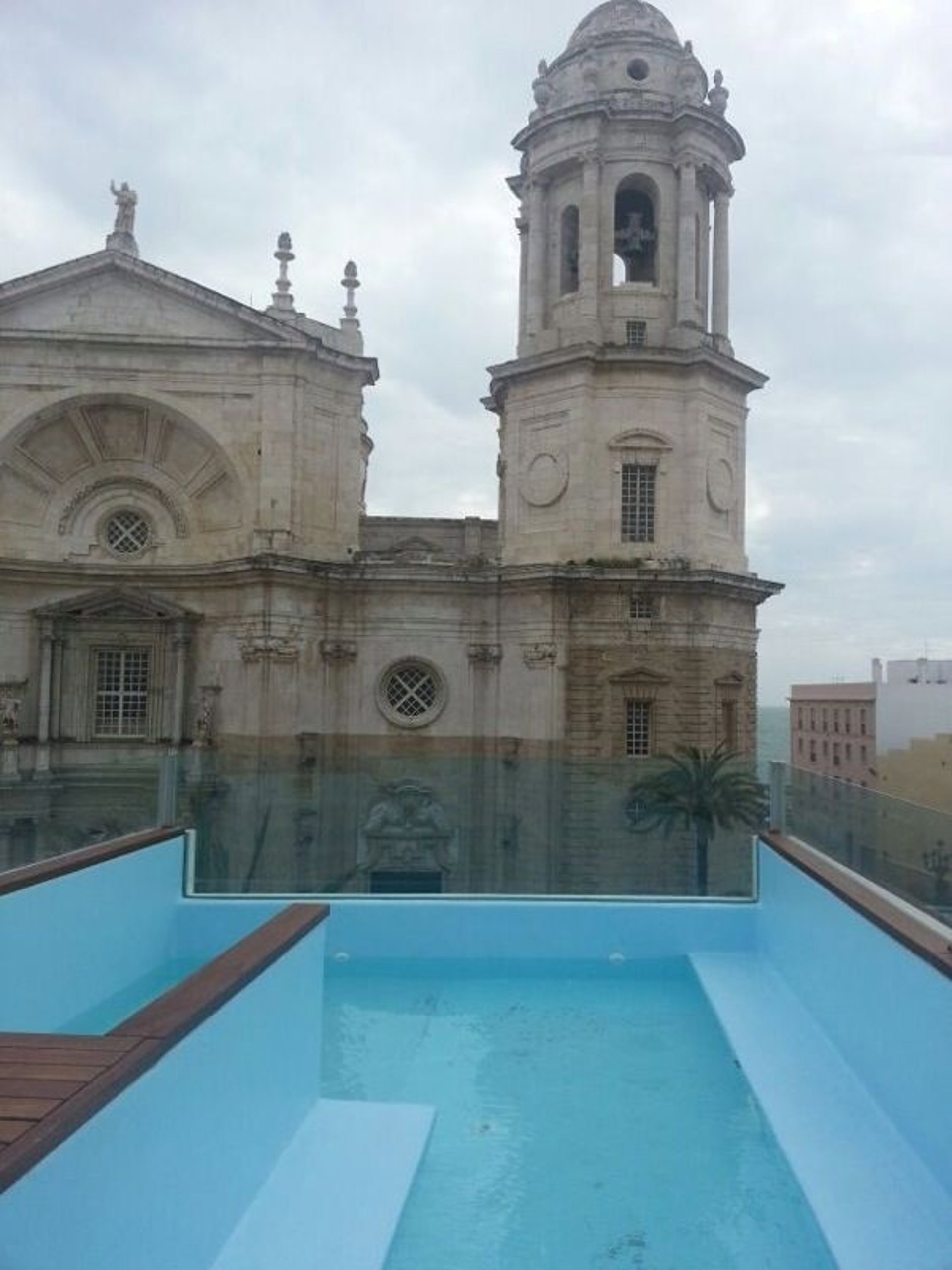 Dos terrazas en la azotea, con una piscina desde la que se contemplan unas impresionantes vistas de la Catedral de Cádiz, y 14 habitaciones con alusiones a la historia de la ciudad, conforman el principal atractivo de un nuevo establecimiento hotelero que abrirá sus puertas al público a finales de la próxima semana, en una de las plazas más señeras y visitadas por los turistas y de paso obligado en el casco antiguo de la ciudad.