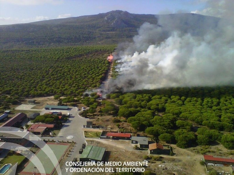 Efectivos del Plan Infoca continúan trabajando en las tareas de extinción del incendio declarado en la tarde de este miércoles en el paraje conocido como Punta Camarinal, en Tarifa (Cádiz), el cual "evoluciona favorablemente".