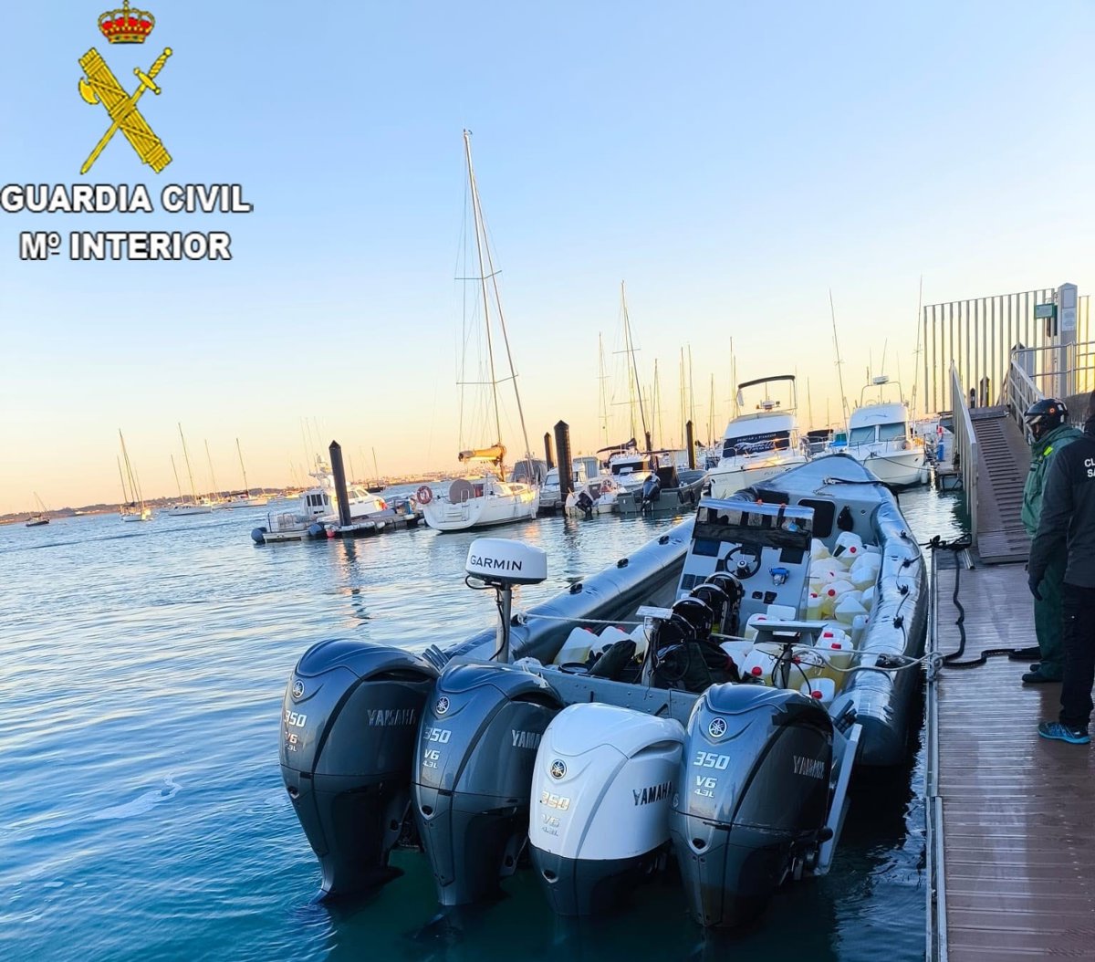 Narcolancha interceptada en Sancti Petri con petacas con gasolina. - GUARDIA CIVIL