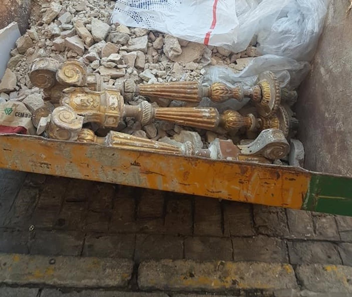 Tres candelabros de la Catedral de Cádiz en una cuba de obra - CEDIDA