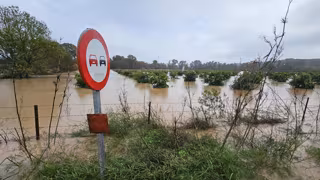 Cultivos anegados de agua por el desbordamiento del río Guadiaro, en Jimena de la Frontera. - Nono Rico / Europa Press