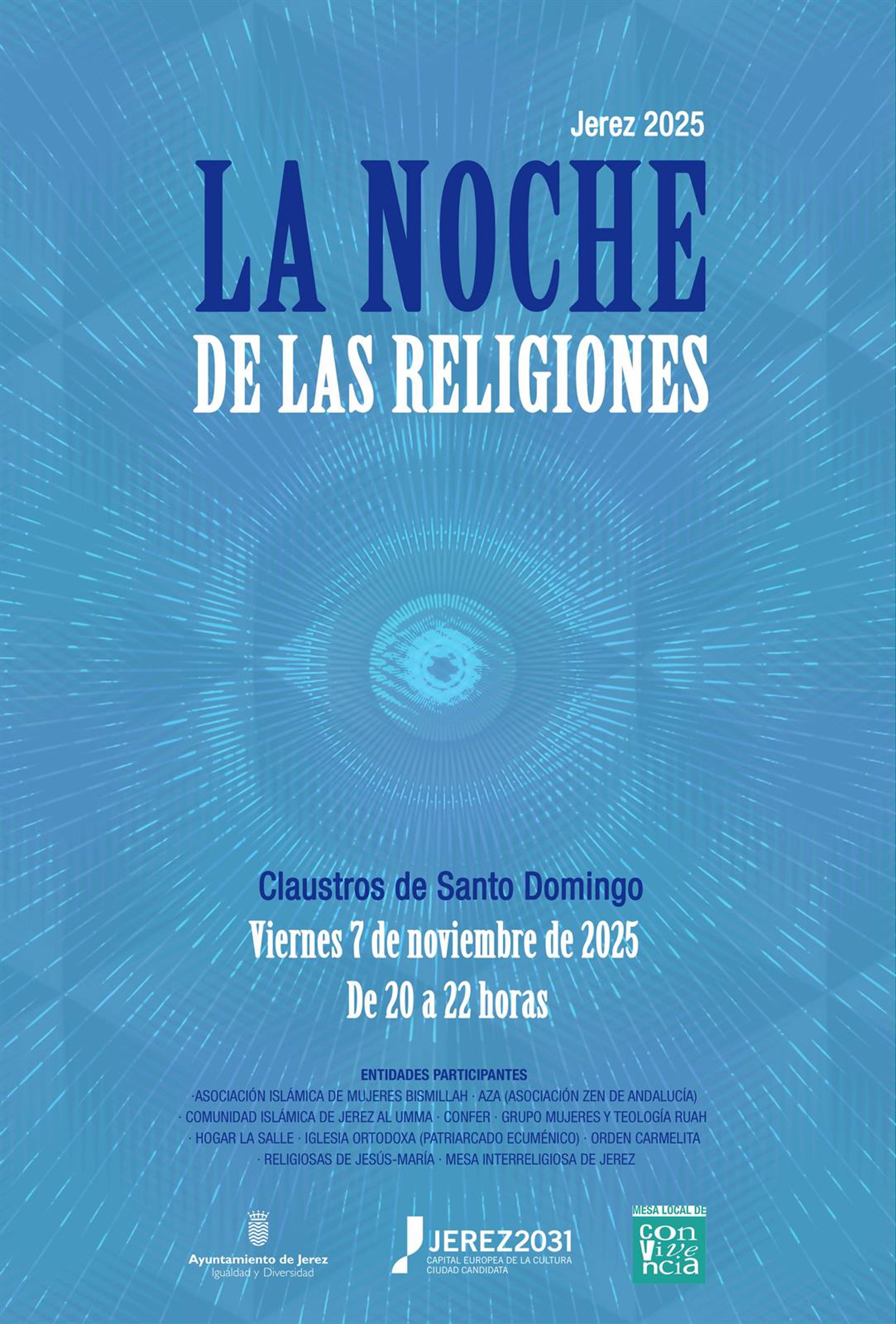 La Noche de las Religiones contará con la participación de la Asociación Islámica de Mujeres Bismillah, Asociación Zen de Andalucía, Comunidad Islámica de Jerez Al UMMA, Confer, Grupo de Mujeres y Teología RUAH, Hogar La Salle, Iglesia Ortodoxa (Patriarcado Ecuménico), Orden Carmelita, Religiosas de Jesús María y Mesa Interreligiosa de Jerez.